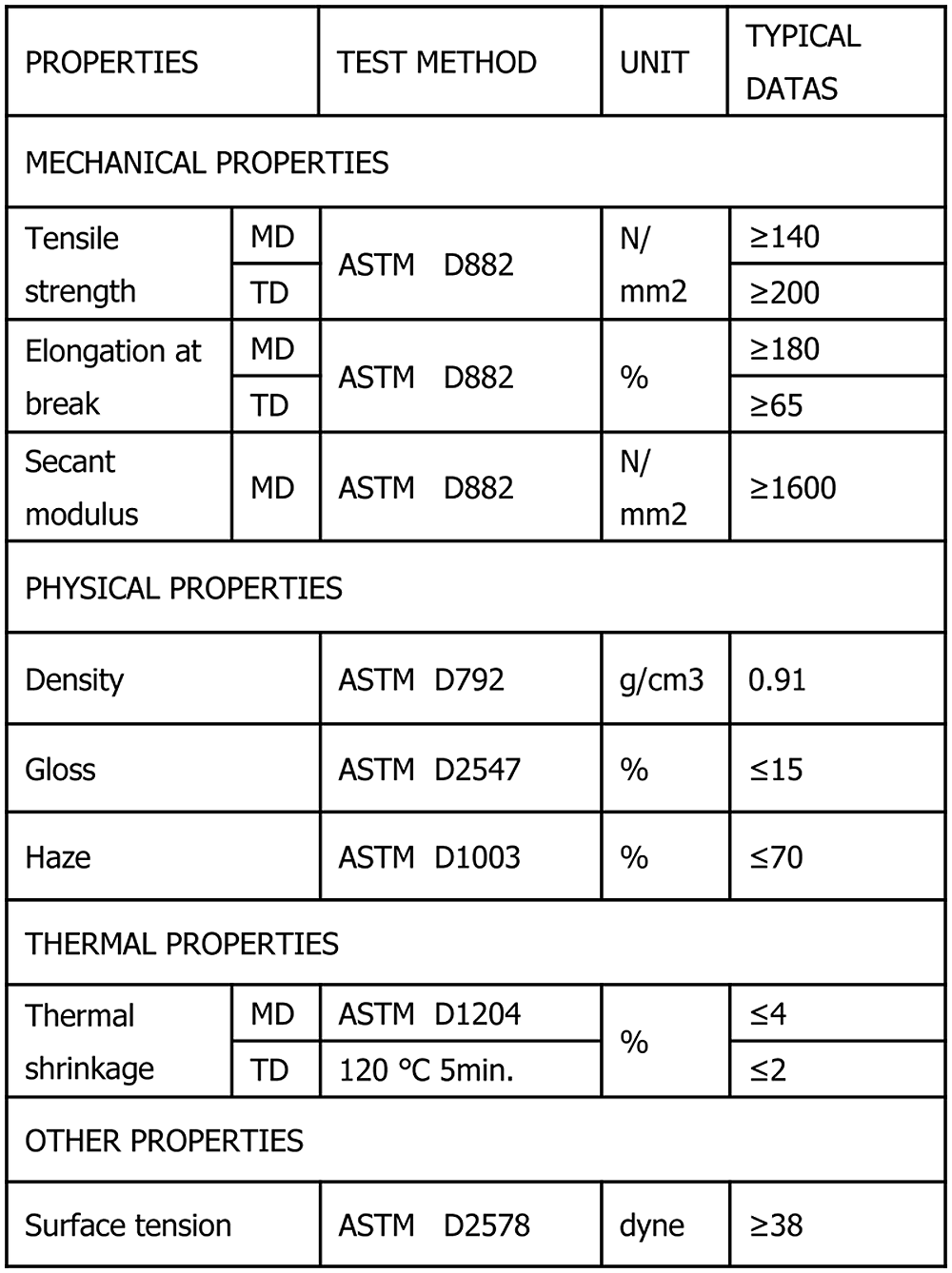 Good Matted surface, Excellent ink adhesion, High Tensile strength, Excellent oil resistance, Low static, High vapour barrier.
