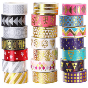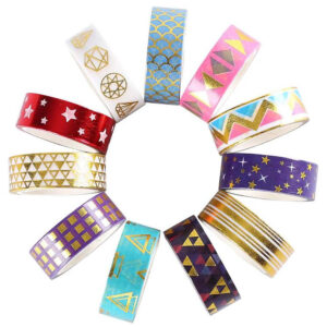 Washi tape is a pretty, decorative paper masking tape. It’s thin, durable, made of natural fibers like hemp and bamboo, inexpensive, and comes in hundreds of colors and patterns.The tape is easy to stick on many surfaces–including wood, plastic, and metal–and is easy to remove without causing damage. We carry a wide selection of washi tape for any craft project you can dream up. Get started today!